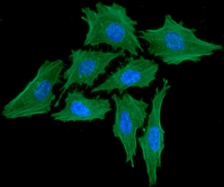 Immunflorescense (ICC/IF) ![]() | ICC/IF analysis of ACTB in HeLa cells. The cell was stained with ATGA0570 (1:100). The secondary antibody (green) was used Alexa Fluor 488. DAPI was stained the cell nucleus (blue). |